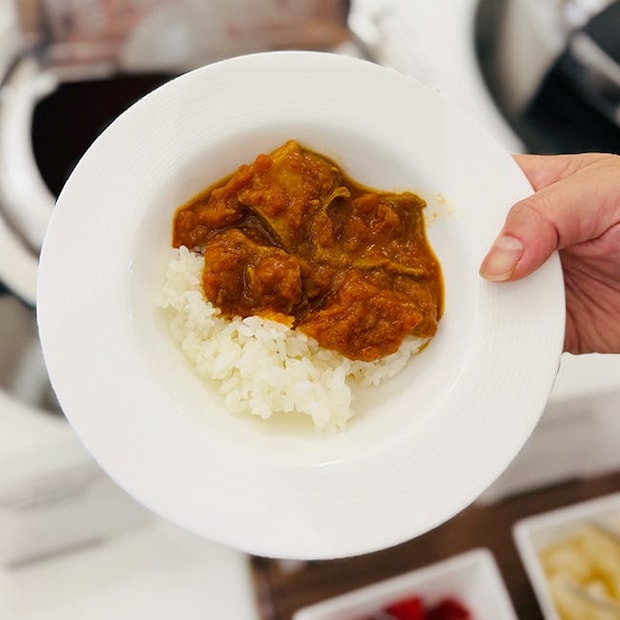 トマトのコクと酸味が楽しめる「松阪牛スジ トマトスパイシーカレー」。お肉はよく煮込まれていて、とろっとろ。ほどよいスパイシーさもたまりません。