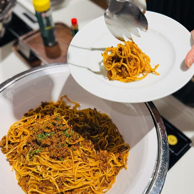 パスタでも松阪牛を味わえるなんて。「松阪牛ボロネーズ スパゲッティー」は、旨みいっぱいのトマトソースには、お肉がぎっしり入っていて、本当に幸せ。こんなにおいしくて、贅沢感のあるパスタはなかなかありません!