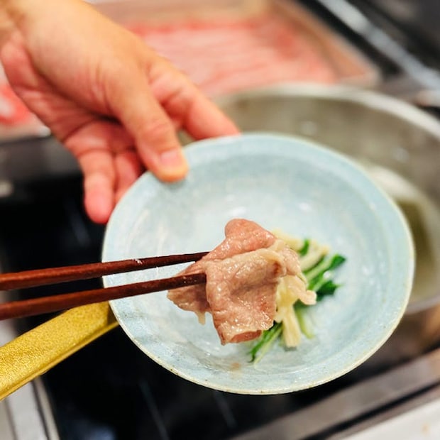 ステーキ、ハンバーグ、パスタときて、お次は「松阪牛のしゃぶしゃぶ」です。
