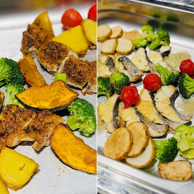 「国産鶏モモ肉と秋の味覚のガランティーヌ」です。鶏のモモ肉はしっとり柔らかで、栗やきのこを詰め合わせているから食べ応えも。