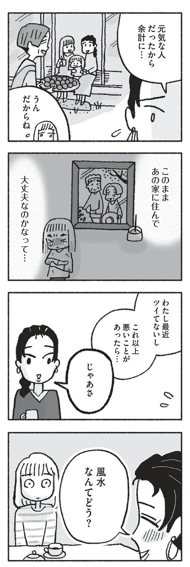 2人の子供と優しい夫に囲まれて幸せに暮らしている専業主婦・梅子。その一方で自分に自信が持てない梅子は、大人になってから「ツイてない」と思うことが増えていた。そんな中、亡き両親が遺した実家のリフォームを計画するが、実家で娘が怪我をするなど不運な出来事が続いたことに不安を覚えた梅子は、親友からの勧めで半信半疑ながらも風水師を頼ることに。風水を意識し始めてから小さな幸運が続き、効果を実感した梅子はどんどん風水に執心していくようになり――?