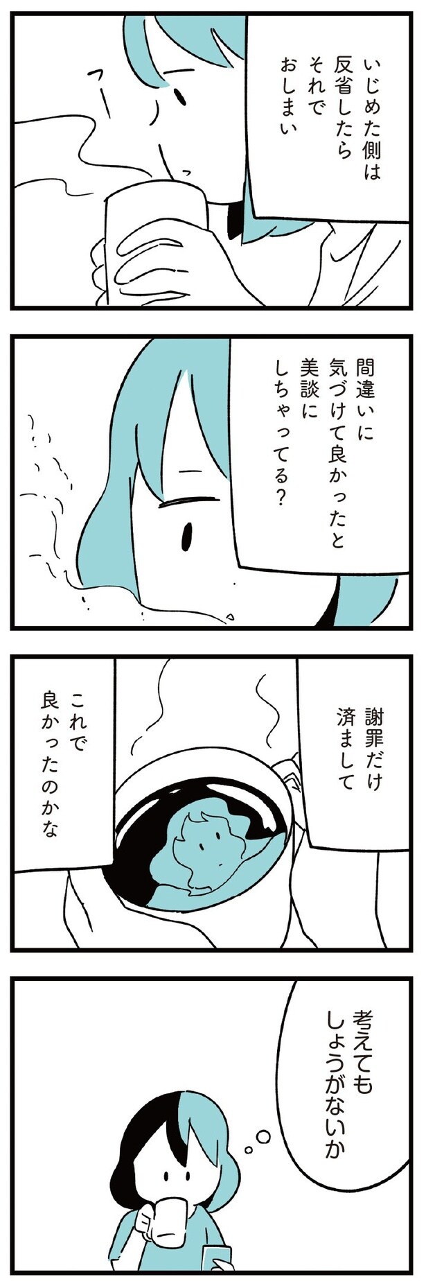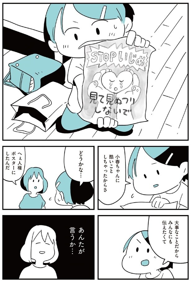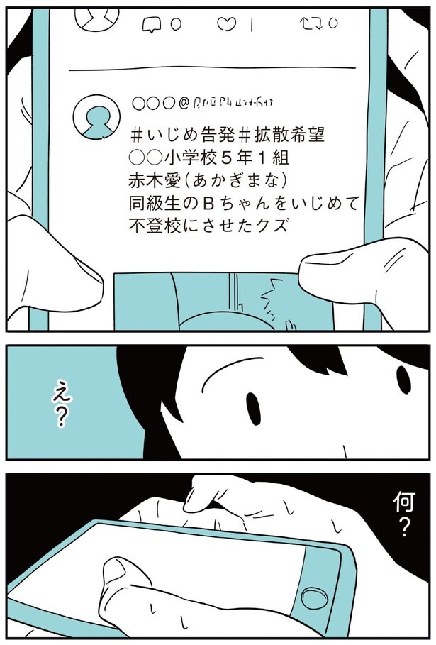 前回、「加害者の親としてできること」の少なさに呆然としてしまった加奈子。反省の色を見せ、いじめ反対派に鞍替えした愛の様子に、加奈子は複雑な気持ちを抱いていた。そんなある日、SNS上にとある告発が投稿されて…。