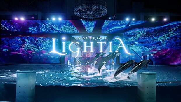 ひとつ目の見どころは、シーパラダイスならではのイルミネーション企画「LIGHTIA~七色のキセキ~」。約1,500名を収容できる「ライブスタジアム」で開催され、イルカと映像・光・音・噴水の演出がシンクロする、没入型ナイトパフォーマンスに。