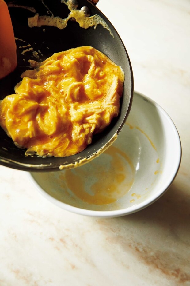 卵は半生状に一度火を通したら、あとは仕上げにさっと炒め合わせるだけ!