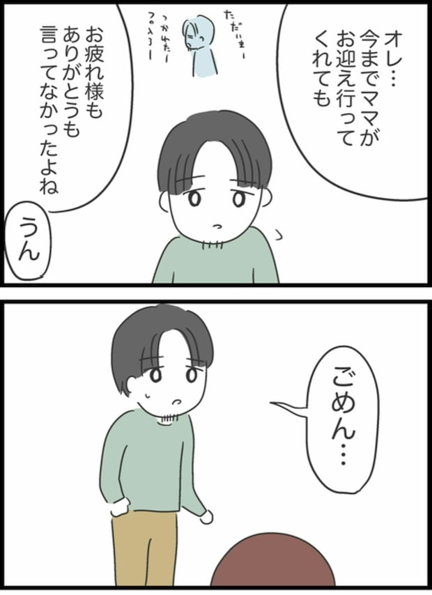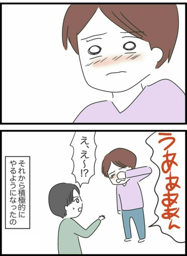 会社を早退して、子どもを病院に連れて行く大変さを、ようやく理解した夫。初めて「ありがとう、お疲れさま」を口にします。それは妻にとって、号泣するほどうれしいできごとでした。