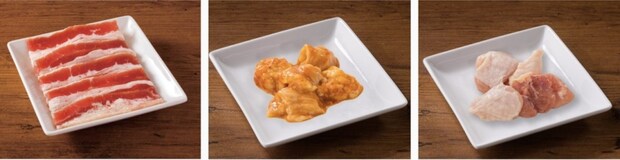 (左から)バラカルビハーフ、牛ホルモンハーフ、但馬鶏ももハーフ