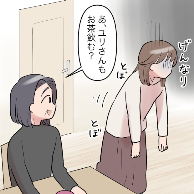 寝室に勝手に入られ、掃除をされたことにげんなりしながらリビングへ戻ると、「あ、ユリさんもお茶飲む?」とまるで自分の家かのように振る舞う義母。