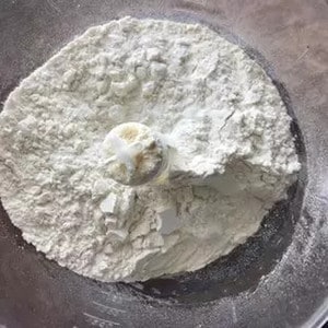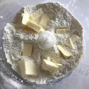 粉類を混ぜたら、カットしたバターを加えてさらに混ぜます。