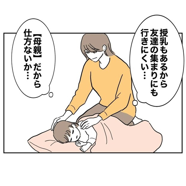 まいは、夫のように自分も友だちの集まりに行きたい気持ちもあるのでしょう…。ですが、「授乳があるから」「母親だから仕方ない」と自分に言い聞かせていますね。