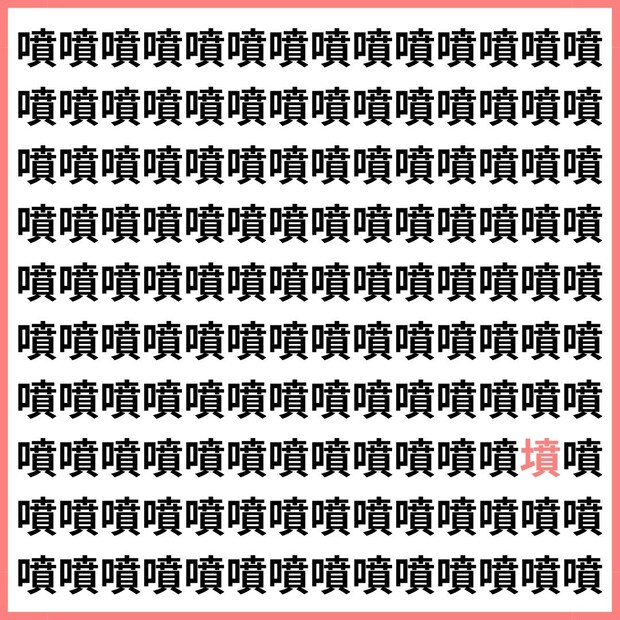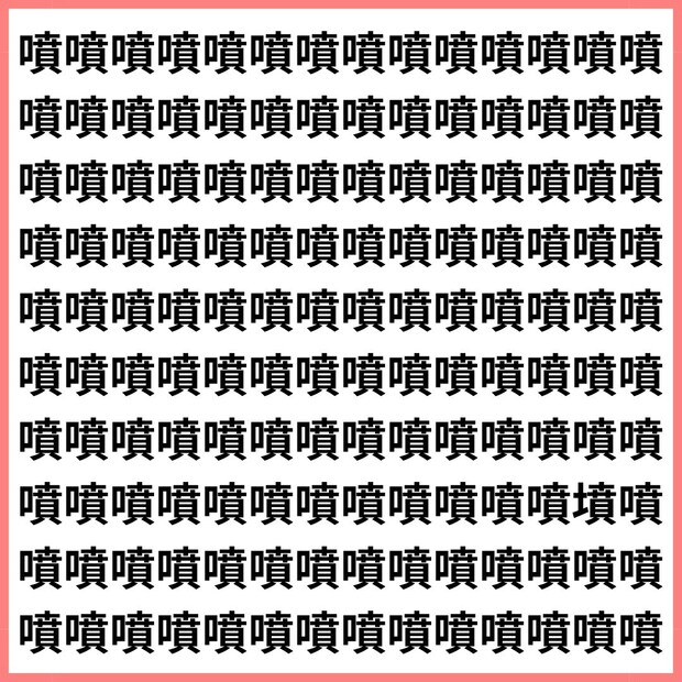 たくさんの「噴」の中に、1文字だけ違う漢字が混ざっています。