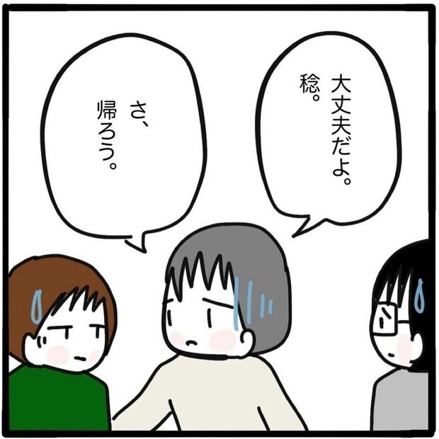 呼吸が荒くなるものの、なんとか諦めずに頑張る苗さん。次の日の仕事のことも考え、苗さんの夫は家族に一度家に戻った方がいいと提案します。このタイミングで帰ることに抵抗する弟・稔さんですが、苗さんを信じて家へ戻りました。