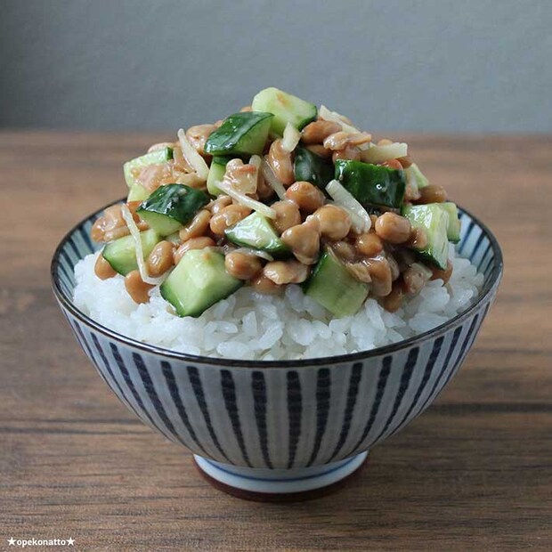 いろいろな食材と合わせたオリジナルの納豆ご飯を日々楽しんでいるという、おぺこやんさん。