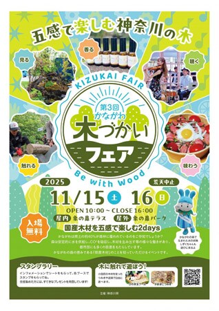 神奈川県は、木材の普及啓発イベント「第3回かながわ木づかいフェア」を、神奈川県横浜市中区の象の鼻パークおよび象の鼻テラスにて、11月15日(土)・16日(日)に開催する。