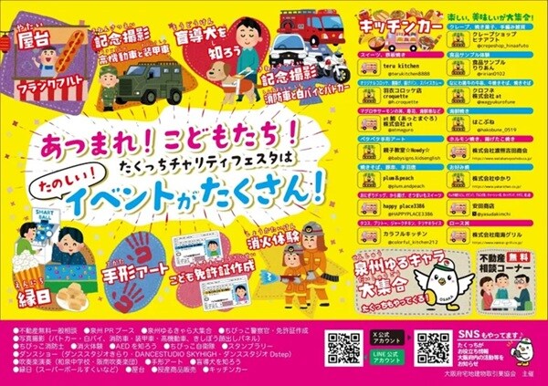 大阪府宅地建物取引業協会は、11月30日(日)、大型チャリティーイベント「第3回たくっちチャリティフェスタ!」を浪切ホール祭りの広場・岸和田カンカンベイサイドモールにて開催する。