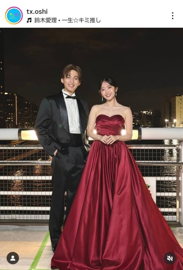 この日、公式Instagramでは「たくさんのご視聴ありがとうございます!! 引き続き、お楽しみください」などのコメントとともに写真を投稿。八木勇征は黒のタキシード、鈴木愛理は赤のドレスといったゴージャスな写真を公開。