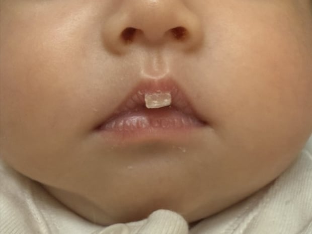 ある日🐬☺︎さんが撮影したのは、赤ちゃんの唇の上にあるもの…。取りたくて取りたくてウズウズしてしまう…それがこちらです。