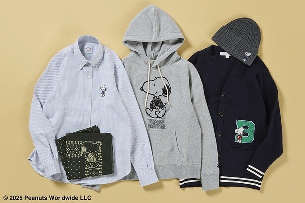2024年1月に初コラボが実現して以来、好評を博している「PEANUTS」と「Brooks Brothers」のコラボコレクション。今回の新作は2025年秋冬のアイテムという位置付けで、アウトレット店をのぞく全国の「Brooks Brothers」店舗とオンラインストアにて販売がスタートしている。