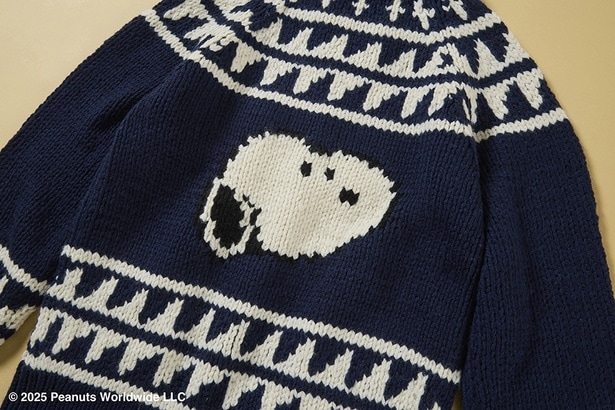 ネイビーをベースにホワイトを効かせた「カウチンニット」(7万1500円)は、背面にあしらわれたスヌーピーのフェイスモチーフがインパクト抜群!ハリスツイード社製の上質なヘリンボーン生地が使われた「ヘリンボーンジャケット」(14万3000円)は、胸元にあしらわれたエンブレムだけでなく、裏地にもスヌーピーのモチーフが採用されている。カウチンともジャケットとも相性のよい「ボタンダウンシャツ」(各2万6400円)は、ホワイトとブルーの2色展開。いずれもおめかししたスヌーピーのワンポイント刺しゅうがとびきり愛らしい。