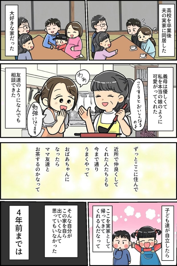 高校卒業後は、夫の実家で義理両親と同居することに。彼の母とも仲が良く、幸せになると信じて結婚した主人公。