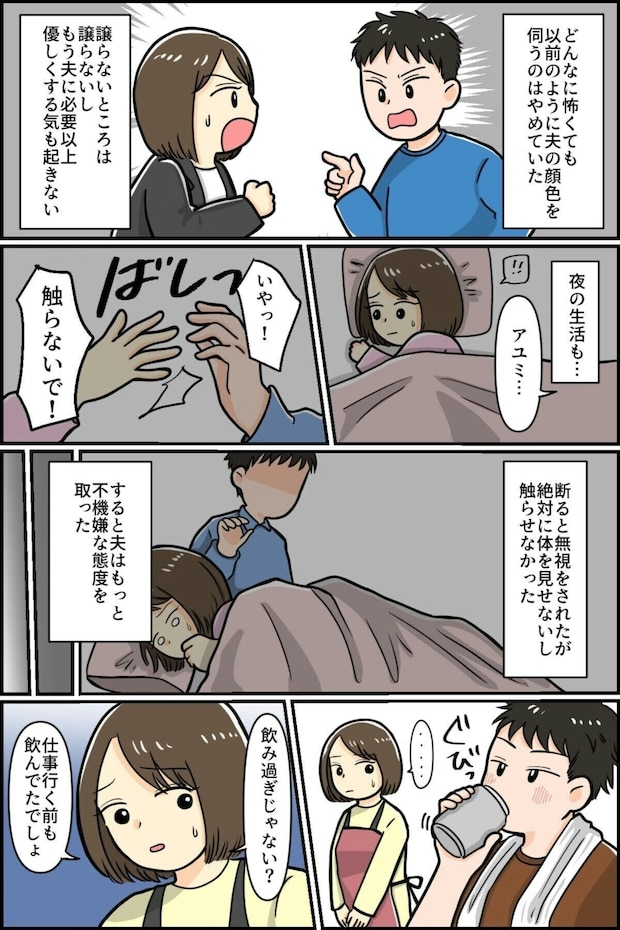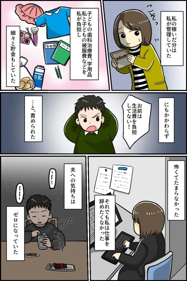 我慢を続けた主人公でしたが、夫が子どもにすら愛情を見せなくなり、思いが変化していきます。夫婦としても家族としても、もう終わりだと思い始めるように。