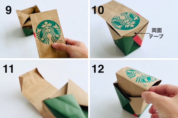 8. 外側に飛び出た部分を両面テープで留めれば、ゴミ箱の本体は完成です。