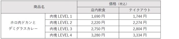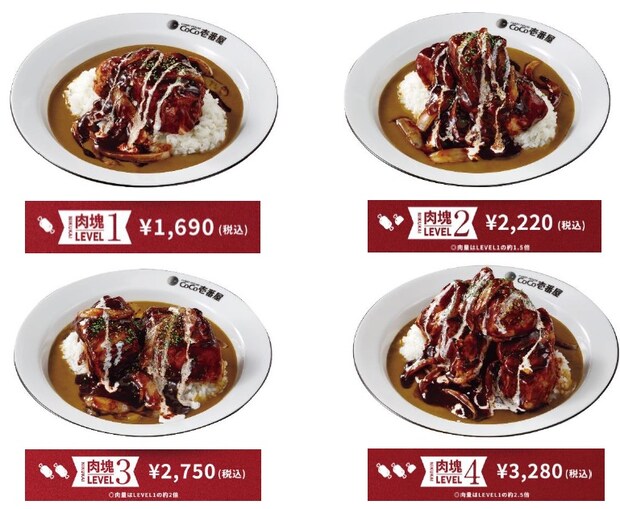 「ホロ肉ドカンとデミグラスカレー」は、注文時に肉塊レベルを選べる「肉塊オーダー制」。肉塊レベルは豚肩ロース肉の量を表しており、LEVEL1~4まで4段階のサイズを用意しているという。
