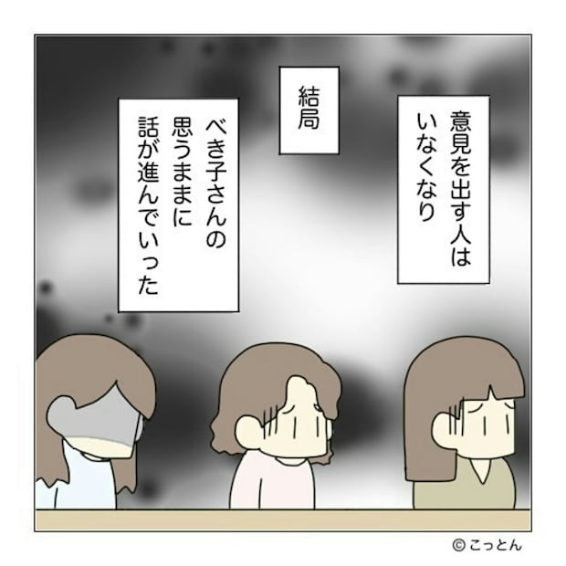 結局、誰もべき子さんに意見することができず、歓迎会は音楽がないまま進みました。また、音響をお願いしようと思っていた山田さんは、やることがなくなってしまい、手持ち無沙汰に。それぞれが不満を抱えたまま、歓迎会を終えます。