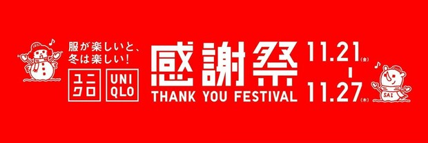 ユニクロの感謝祭が、2025年11月21日(金)〜11月27日(木)の7日間開催されます!