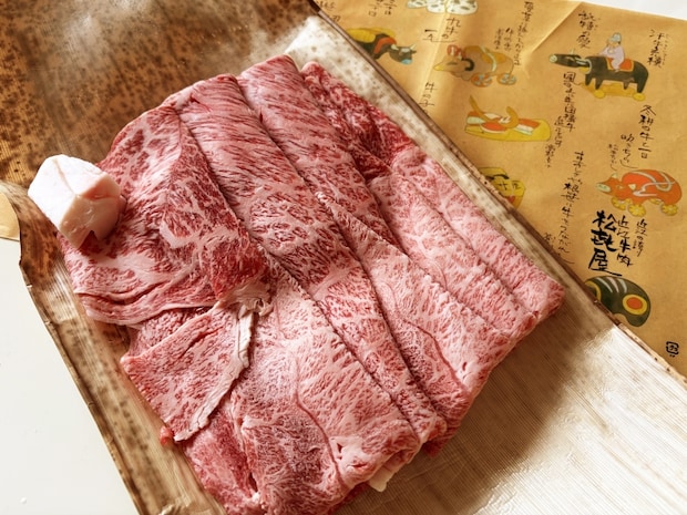 滋賀県大津市のふるさと納税人気返礼品「松喜屋近江牛厳選すき焼き・しゃぶしゃぶ用 約500g(3~4人前)」。明治初期、全国に近江牛の名を広めた老舗「松喜屋」の低温熟成近江牛(ロース・モモ・肩)は、1枚1枚がとても大きく、丁寧にスライスしてあるので、解凍もしやすく、すき焼きやしゃぶしゃぶにピッタリ!甘くて柔らかな近江牛は、思った以上に量があり、牛脂もついているので、筆者的にはお肉メインのすき焼きで楽しむのがおすすめです。綺麗な梱包なので、贈り物にも◎です。
