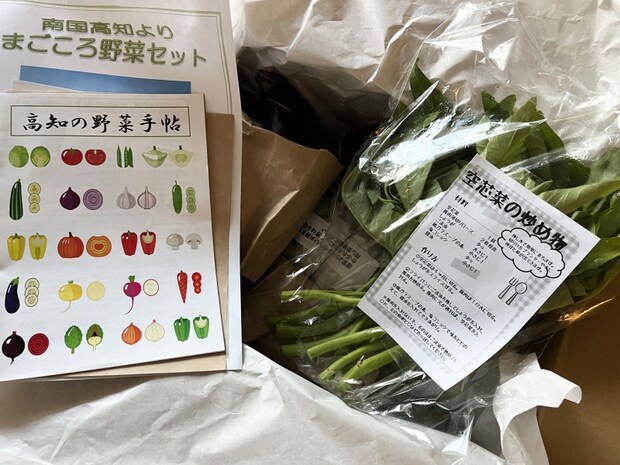 高知県須崎市のふるさと納税人気返礼品「南国高知より まごころ野菜セット【よりどり】」。温暖な気候の高知県では1年を通して美味しい野菜がたくさん育ちます。「ファーマーズマーケットひなた」から届く野菜は、夏だと、シャキシャキとした食感が特徴の「リュウキュウ」や、赤紫色のじゃがいも「デストロイヤー」などの珍しい野菜も。うれしいレシピ付きなので調理に困ることもありません。また、採れたての旬の野菜セットは、可能な限りビニール袋の使用を控えて地球に優しく、紙の袋にそっと入れられています。春夏秋冬、それぞれの旬の季節野菜を味わってみたくなる返礼品です。
