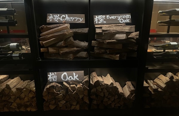 同店のグリルは、アルゼンチンやウルグアイ、ブラジル南部の“ガウチョ文化”にルーツを持つ伝統的な「パリージャ」スタイル。火を上げず芯だけが真っ赤に燃える“熾火”で、カシ・ナラ・サクラなどの薪を使い分けながら、素材ごとに最適な火入れを行う。