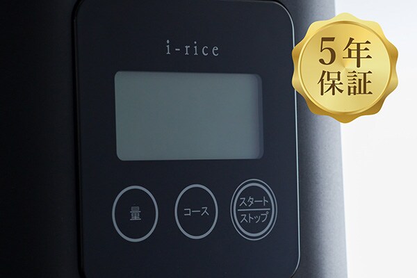 さらに、5年間のメーカー保証を標準付帯とも。米価高騰の折、90年のモータ技術から生まれた家庭用精米機「i-rice」を利用してみては。