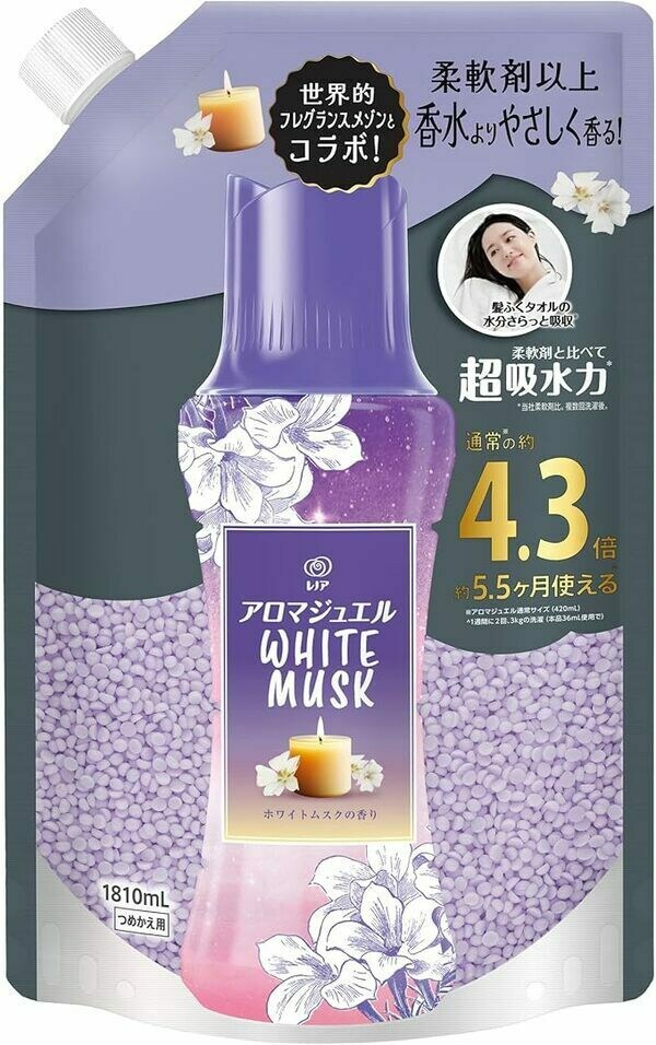 世界的フレグランスメゾンとコラボした「レノアアロマジュエル WHITE MUSK」は、上品なルームキャンドルのような、柔軟剤より上質で香水よりやさしい香りが特徴です。
