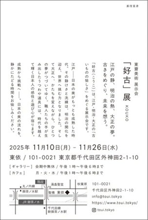 11月10日(月)~26日(水)の期間、東京都千代田区外神田のアートスペース「東依」にて、東齋美術による展示会「好古(こうこ)」が開催されている。