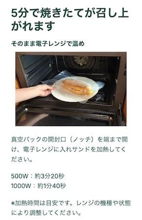 真空パックからサンドを取り出す際は、火傷に注意し、トングなどを使用することを推奨している。