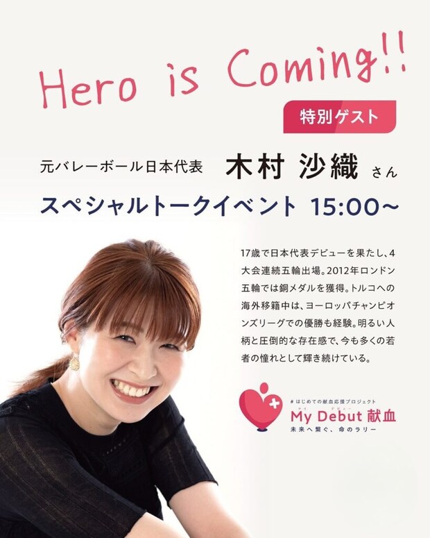 元バレーボール日本代表の木村沙織さんのトークショーやVRによる献血体験、クイズ大会など、子どもから大人まで楽しみながら献血について知ることができるイベントです。