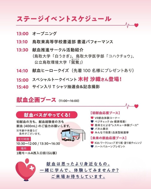 さらに、当日献血バスにて献血をしていただいた方に抽選で、木村さんのサイン入りTシャツプレゼントも!