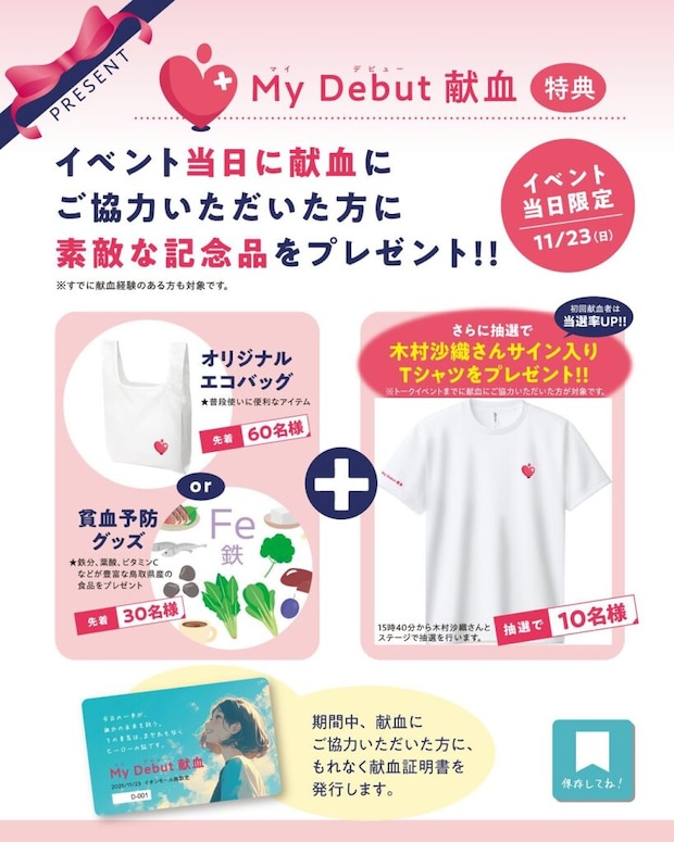当日限定でオリジナルエコバッグや貧血予防グッズのプレゼントも。