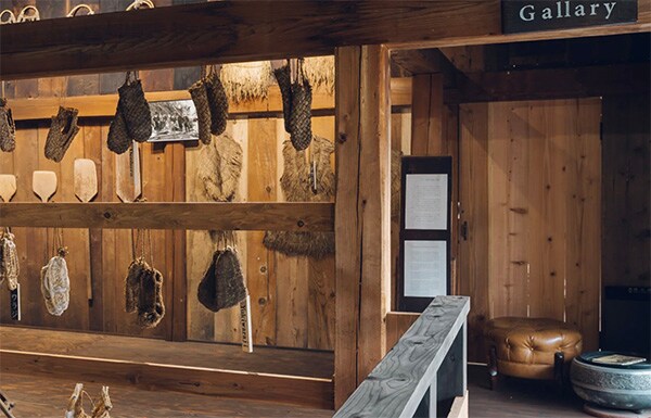 屋根裏の「つし」は民具ギャラリーとして、この土地で手仕事によって生み出された生活道具を展示。植物繊維で作られたものから、慎ましくもたくましく生きた人々の営みが見られる。滞在中は自由に見学でき、2階からの眺望も楽しめる。