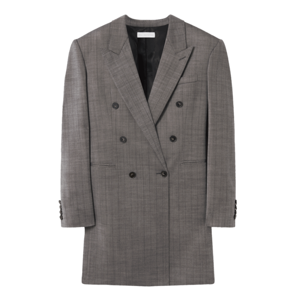 「ミニドレスのように着用できるロングジャケットで、ウエストにベルトをしてもいい。90年代のジュリア・ロバーツのようなムードで着こなしたい!」