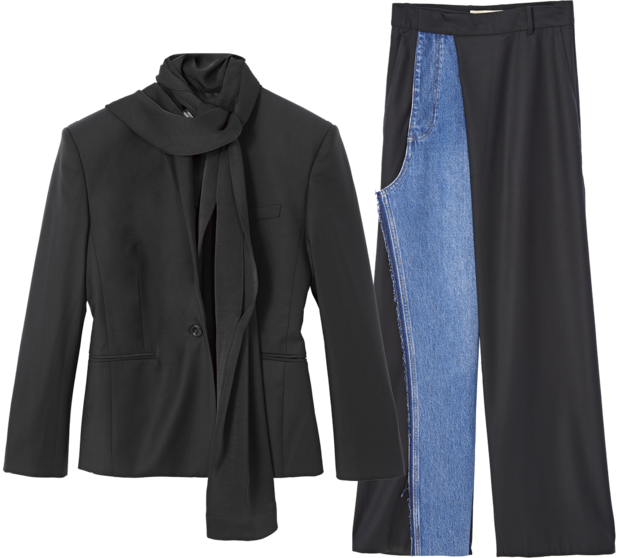 「ドレスライクなトップスと、一部にデニムが使われたスラックスとのセットアップ。ありそうでない遊び心のあるデザインで、気になっています」