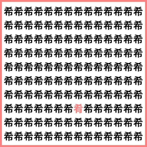 たくさんの「希」の中に、1文字だけ違う漢字が混ざっています。