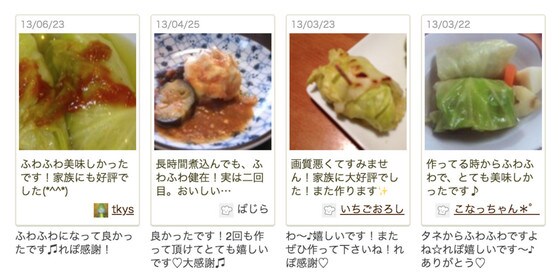「長時間煮込んでも、ふわふわ健在」「作ってる時からふわふわ」「家族に大好評でした!」など、つくれぽ(作りましたフォトレポートのこと)でも好評です。