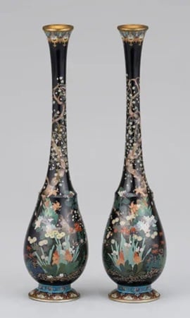 太田吉三郎か「七宝枝垂桜図花瓶(一対)」明治時代後期~大正時代、