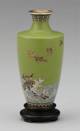 西(京七宝)として、並河靖之「七宝草花雀図花瓶」明治時代中期~大正12年や、