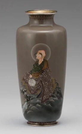 東(横浜七宝)として、河野由太郎「七宝僧侶図花瓶」明治時代後期~大正時代が登場する。