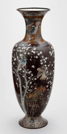 「七宝梅鳩図大花瓶」明治時代中期~後期、