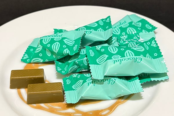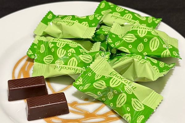 ほうじ茶入りチョコレートは、芳醇な香りのほうじ茶がチョコレートと絶妙に調和する逸品だ。