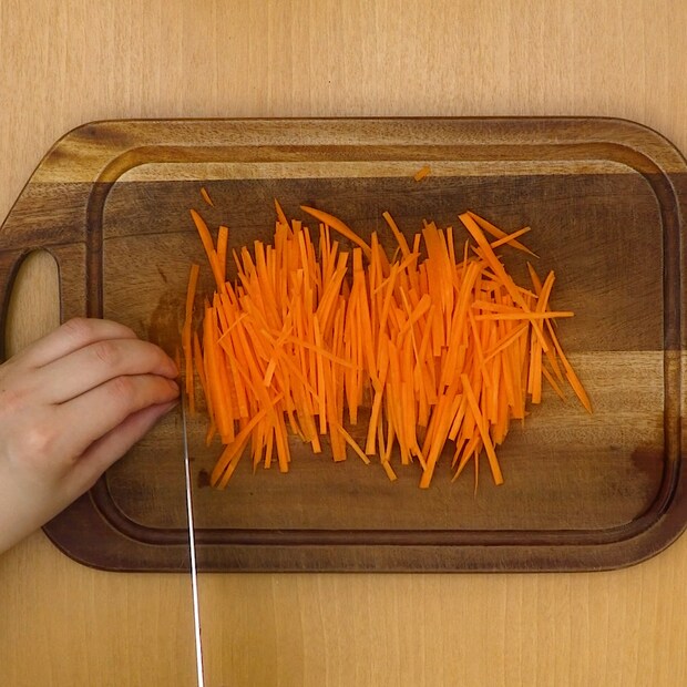 1. レタスは食べやすい大きさにちぎる。にんじんは千切りにする。