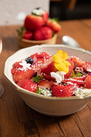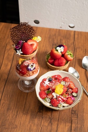 同店定番の「幸せのアサイーボウル」をベースに、旬のいちごがふんだんに使われた“いちごに包まれる”特別仕様で、アサイーの酸味×いちごの甘みが重なり合う、幸福感を演出する一品だ。